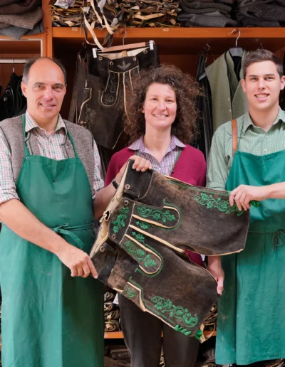 Wir sind eine Familie und halten zusammen. Tradition, Handarbeit und Liebe zum Detail zeichnen unsere Produkte aus. Jede Lederhose ist ein Stück bayerischer Kultur, das mit Stolz getragen wird. Seit über 135 Jahren besteht das traditionsreiche Geschäft des Lederhosenmachers in Berchtesgaden. Gegründet 1888 von Franz Schweser, wurde der Betrieb 1935 von Hans Kurz übernommen und wird seit 1974 von der Familie Stangassinger geführt. 1999 übernahm Franz Stangassinger jun., der seine Meisterprüfung als Jahresbester ablegte, das Geschäft von seinem Vater.